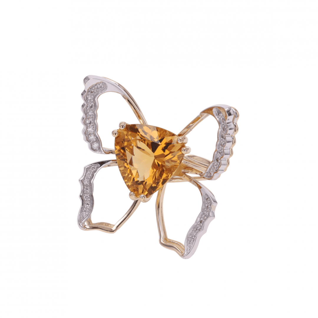 Bague en or blanc et jaune 750/000 sertie d’une citrine et de diamants.