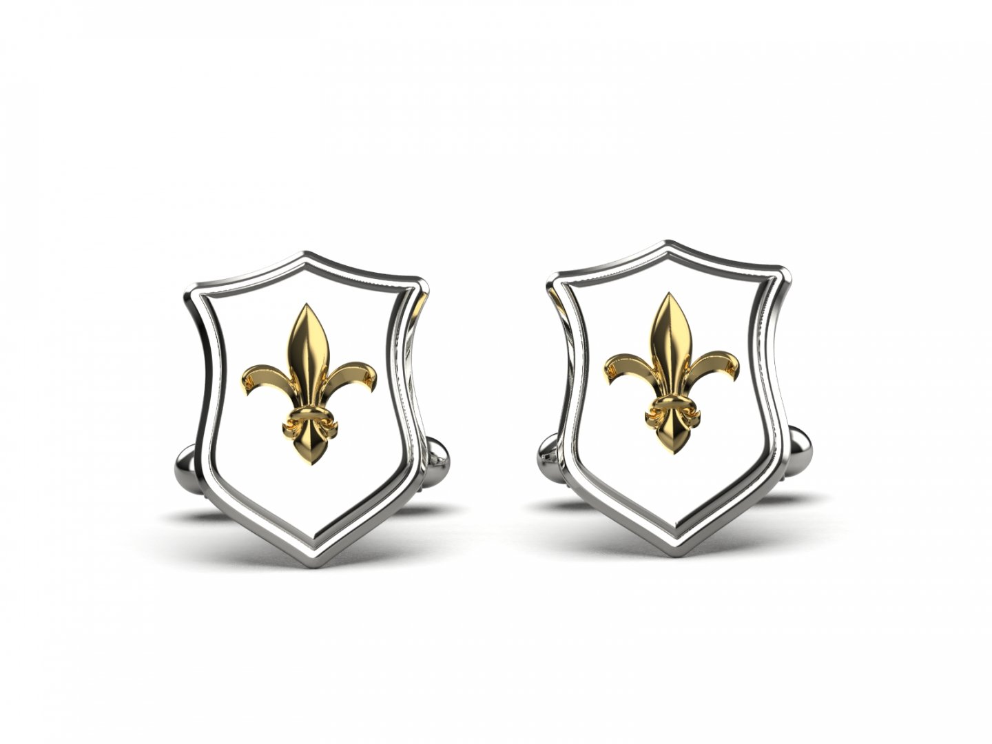 Les boutons de manchettes « Blason » incarnent l’esprit de noblesse et de raffinement. Chacun d’eux présente un blason finement sculpté, rehaussé d’un lys en relief, symbole classique de pureté et de royauté.