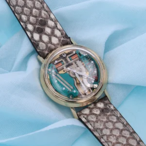 Dans les années 1950, Bulova développe l’Accutron, la première montre électronique à diapason, conçue par l’ingénieur suisse Max Hetzel. Grâce à un diapason vibrant à 360 Hz, elle offre une précision inégalée à l’époque (1 minute par mois). Lancée en 1960, l’Accutron 214 devient un symbole d’innovation : utilisée par la NASA, l’US Army, les compagnies ferroviaires et aériennes, elle marque l’histoire horlogère. Son design sans remontoir ni cadran sur certaines versions, comme la Spaceview, fascine le public. Elle fut un véritable bijou de technologie avant l’arrivée du quartz.