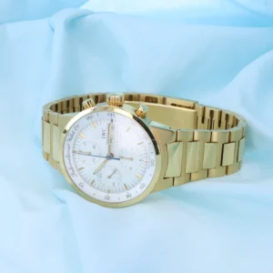 Ce modèle exceptionnel de la collection GST d’IWC, en version chronographe et boîtier en or, est d’une rareté remarquable. La production de la gamme GST ayant été arrêtée en 2004, ces montres ne sont aujourd’hui disponibles que sur le marché de l’occasion. Trouver un exemplaire neuf, jamais porté, comme celui-ci, est donc extrêmement rare – une véritable pièce de collection.