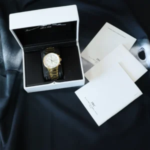 Ce modèle exceptionnel de la collection GST d’IWC, en version chronographe et boîtier en or, est d’une rareté remarquable. La production de la gamme GST ayant été arrêtée en 2004, ces montres ne sont aujourd’hui disponibles que sur le marché de l’occasion. Trouver un exemplaire neuf, jamais porté, comme celui-ci, est donc extrêmement rare – une véritable pièce de collection.