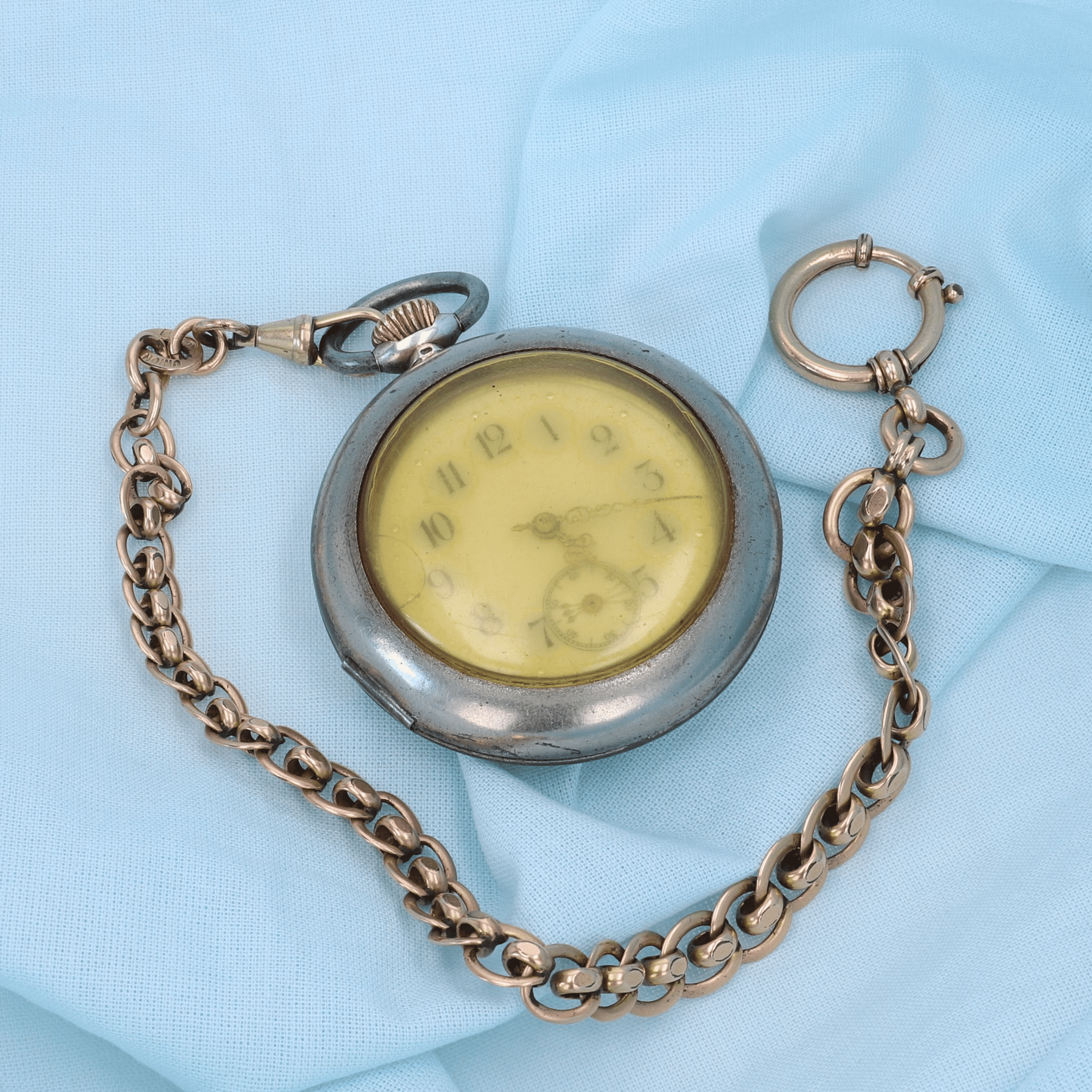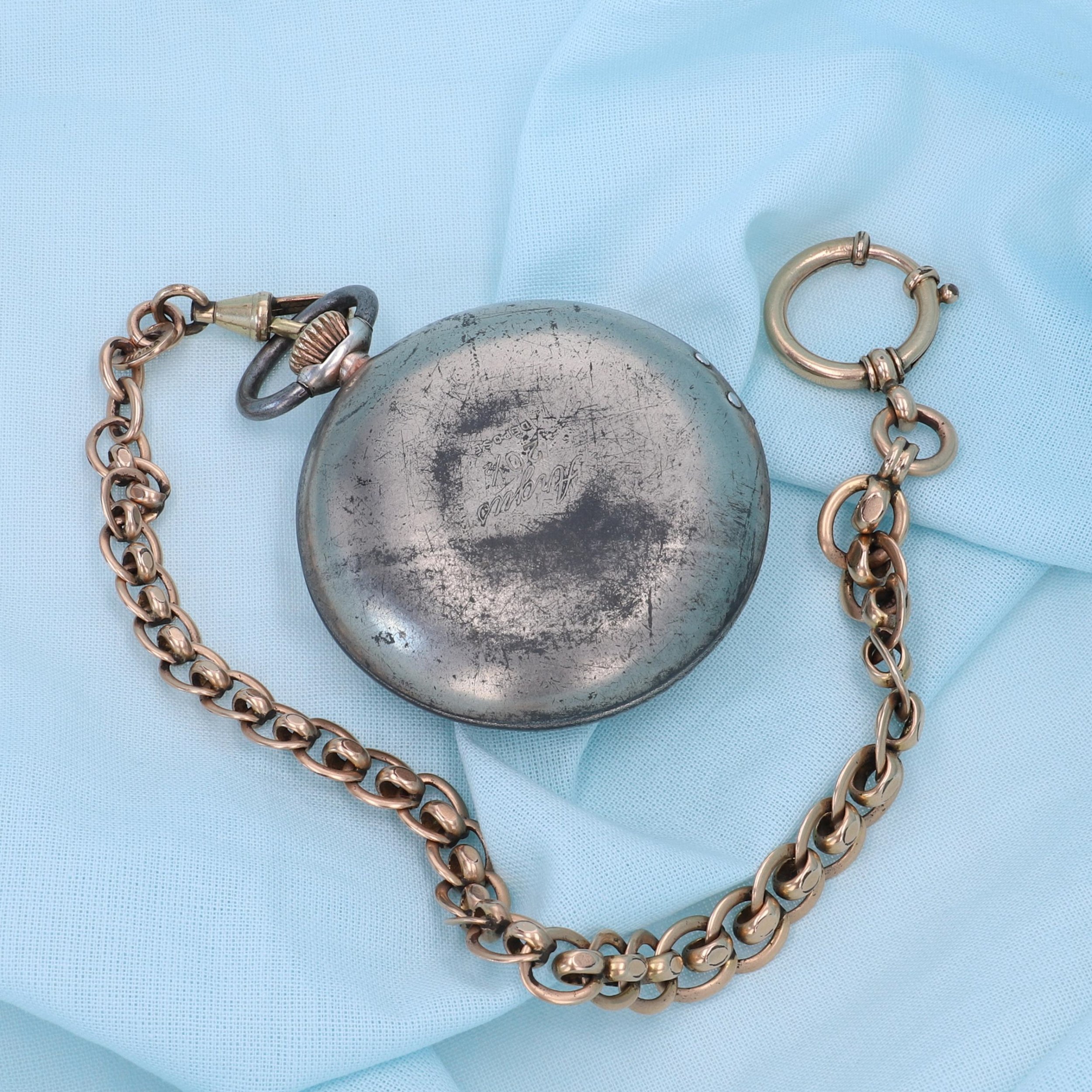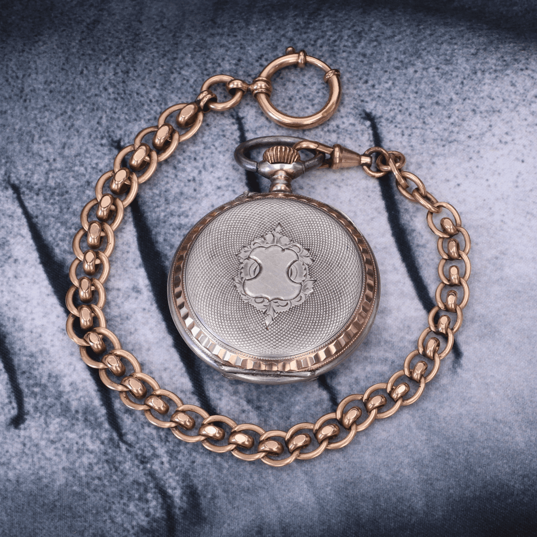 Il s'agit d'une montre de poche en argent. Grâce aux différents poinçons présents sur la boîte, il est possible de retracer son parcours de fabrication.